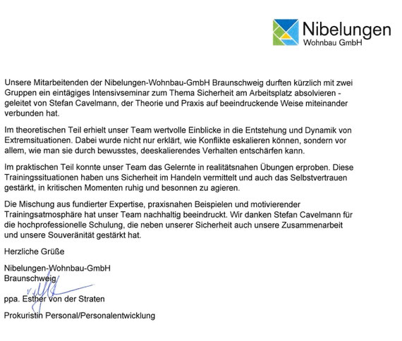 Wir werden definitiv auch zukünftig bei Schulungen im Bereich „Deeskalation am Arbeitsplatz“ mit Herrn Cavelmann zusammenarbeiten.