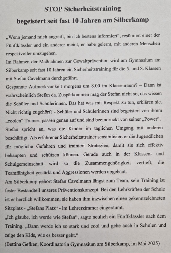 Ein toller Bericht über das Sicherheitstraining im November und Dezember 2016 am Gymnasium Silberkamp in Peine.